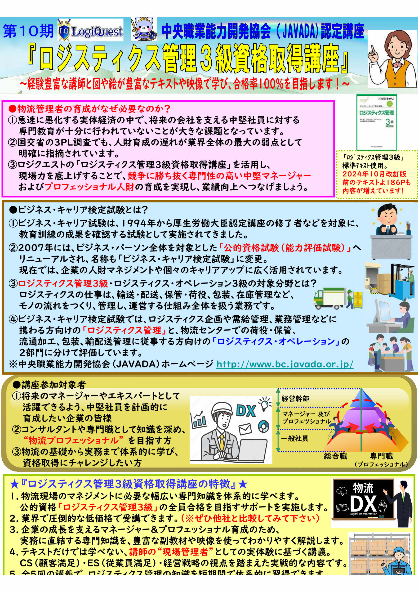 “職業能力評価基準”に準拠したロジスティクス分野の唯一の公的資格試験です。